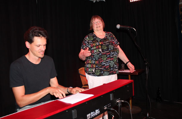 Unser Auftritt am 03.07. ist super gelaufen. Es hat alles geklappt wie am Schnürchen. Die Zusammenarbeit mit Anselm Krisch war mal wieder sehr harmonisch. Es ist eine Freude, wie er mit seiner Musik auf meine Texte eingeht und sie auf seine Weise quasi "kommentiert". Das Publikum war aufgeschlossen und am Ende sehr zufrieden. Ich habe viel Rückmeldung bekommen, am meisten natürlich von meinem Stammtisch. Aber auch die hatten verschiedenen "Lieblingstexte", so dass die Mischung wohl verschiedene Geschmäcker gut getroffen hat.